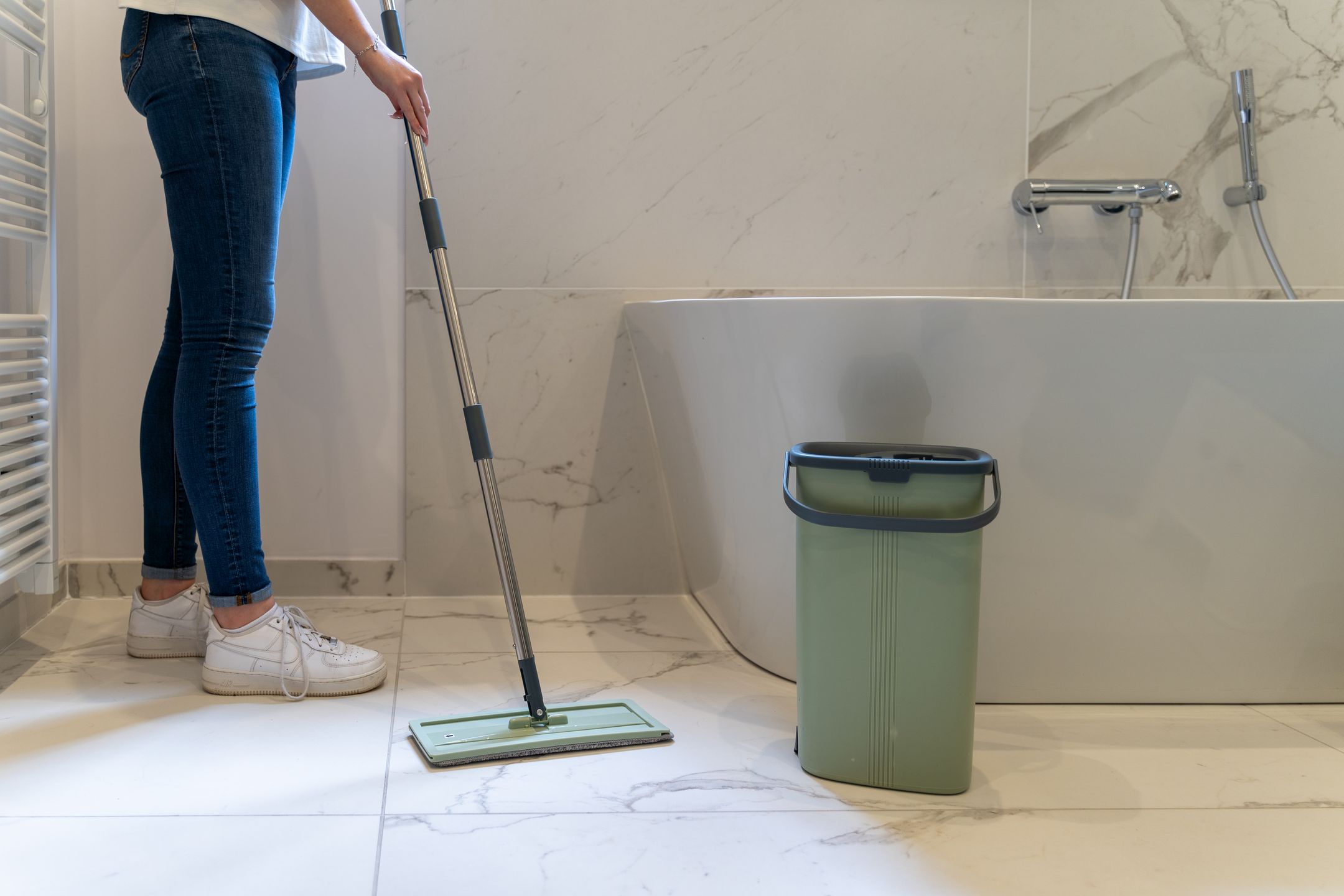 Traditionnel à l'aide de serpillères, lave-ponts ou racleaux