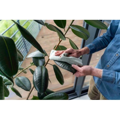 Utilisée sèche, elle élimine la poussière en douceur. Utilisée humidifiée à l’eau claire, elle ravive l’éclat naturel des feuilles en un seul geste. Ses fibres fines permettent de cajoler le dessus comme le dessous des feuilles, même les plus délicates, sans risque de rayures.