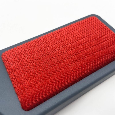 C'est l'implantation de la fibre de velours qui retient les cheveux, et autres poussières. Elle est double face pour pouvoir changer de main. L'utilisation est d'une simplicité déconcertante et d'une efficacité redoutable sur les tissus lisses, même épais (sur le pull en mohair grosse maille tricoté par mamie, on préfère la brosse adhésive ).